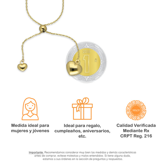 MR10G006 Gargantilla Para Dama Oro Sólido 10K EMF10 Súper Ligera Fantasy Mod Aritos Florentinos Corazón Liso 45 cm