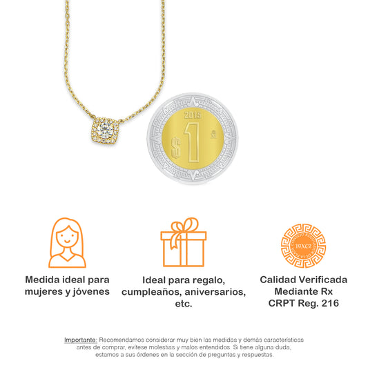 MR14G017 Gargantilla Para Dama Oro Sólido 14K EMF14 Súper Ligera Fantasy Mod Aritos Florentinos Cuadro Zirconias Pavé 45 cm