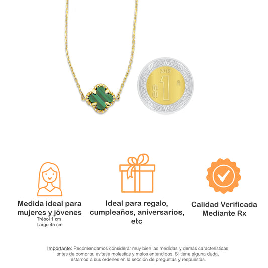 MR10G018 Gargantilla Collar Dama Oro Sólido 10K EMF10 1 Trébol 1.3 cm Verde Largo 45 cm
