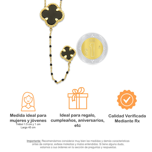 MR14G021 Gargantilla Collar Dama Oro Sólido 14K EMF14 1 Trébol 1.5 cm Negro 1 Trébol 1 cm Negro Largo 45 cm
