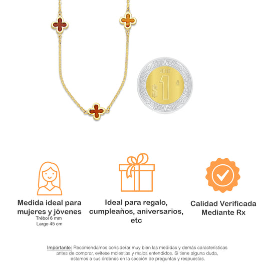 MR14G022 Gargantilla Collar Dama Oro Sólido 14K EMF14 5 Tréboles 6 mm Rojos Largo 45 cm