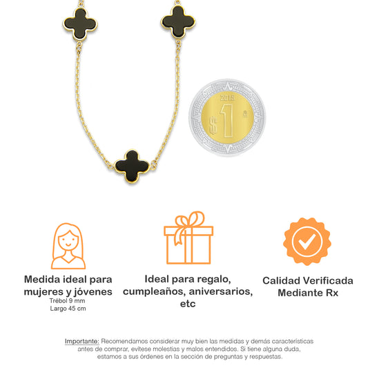 MR14G023 Gargantilla Collar Dama Oro Sólido 14K EMF14 5 Tréboles 9 mm Negros Largo 45 cm