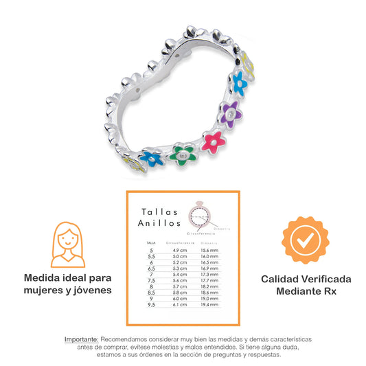 LPAD108 Anillo Churumbela Flores Multicolor Plata .925 Taxco Gro 2628957963