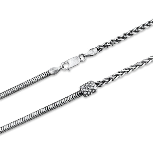 TMPCU010 Cadena Duo Cola de Rata y Espiga con Cilindro 3.2 mm x 55 cm en Plata Fina .925