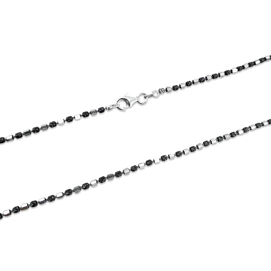 TMPCU012 Cadena Cubos y Bolitas Pavonadas 2 mm x 55 cm en Plata Fina .925