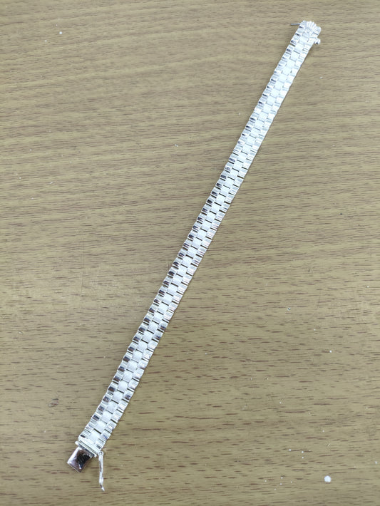 TMPPC006-20 Pulsera Caballero Modelo Rlx 1x1 Centro Ancho 1.1 cm de Ancho x 20 cm de Largo en Plata Fina .925