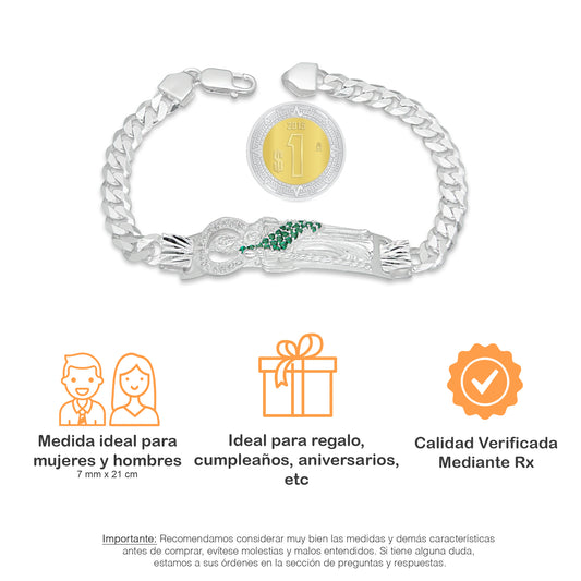 LPPC087-21 Pulsera Esclava San Judas Con Eslabones Cubano Americano 7 mm x 21 cm en Plata .925