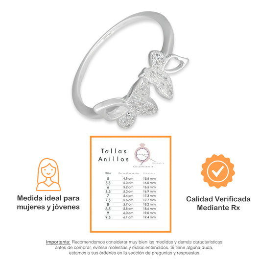 TMPAD012 Anillo Ajustable de Mariposa con Zirconia de Micropave en Plata Fina .925