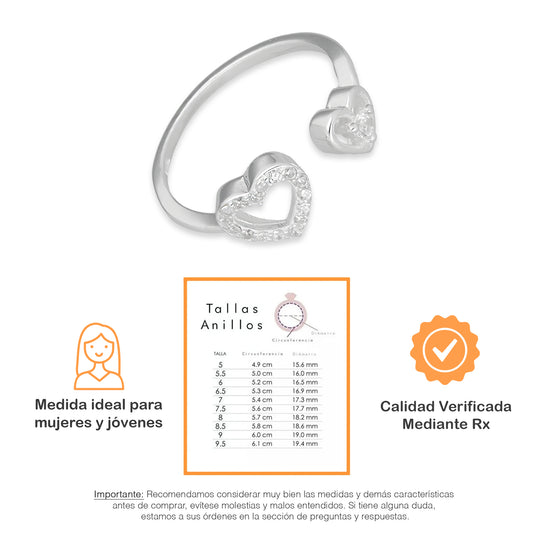 TMPAD013 Anillo Ajustable Corazon Doble en Plata Fina .925