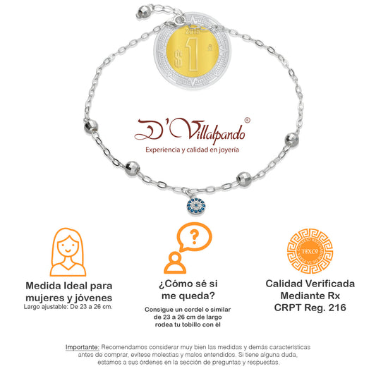 LPTB001 Pulsera Tobillera Mod Bolas Facetadas Circl Plata .925 Taxco 855691188