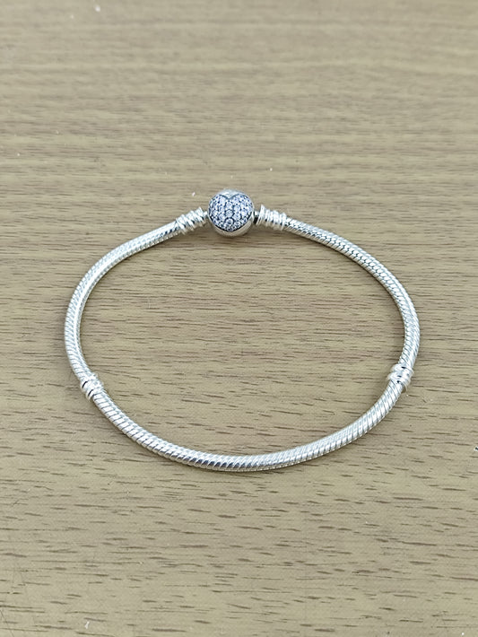 TMPPD027-17 Pulsera Dama Pand Círculo con Corazón Zirconias 17 cm en Plata Fina .925