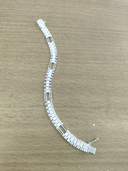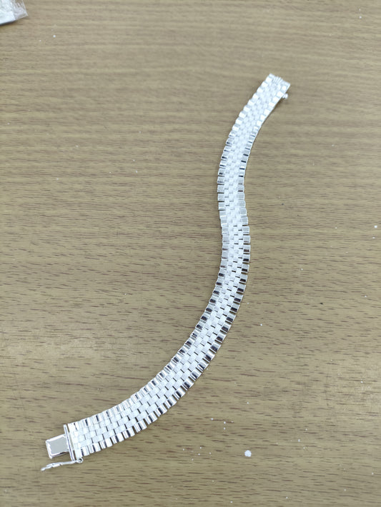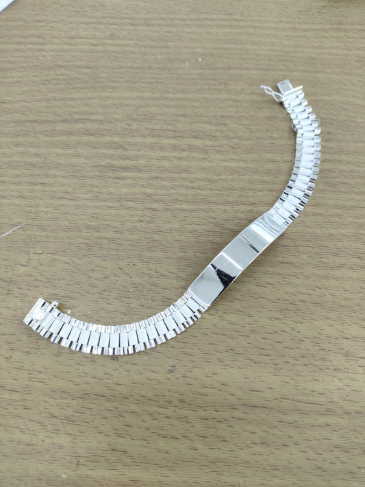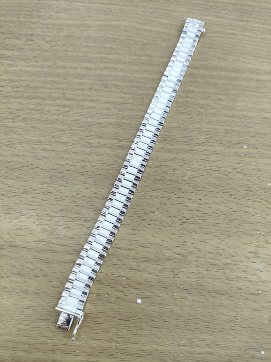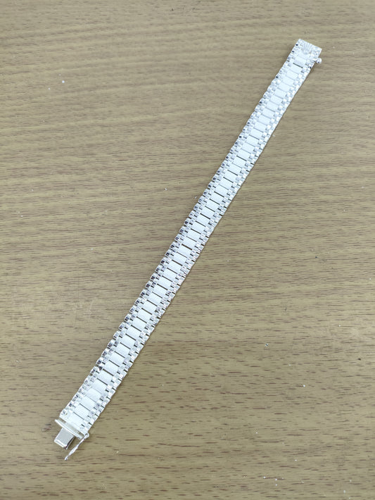 TMPPC005-21 Pulsera Caballero Modelo Rlx 1x2 1.2 cm de Ancho x 21 cm de Largo en Plata Fina .925