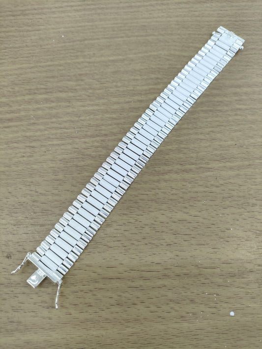 TMPPC004-20 Pulsera Caballero Modelo Rlx 3*2 1.1 cm de Ancho x 20 cm de Largo en Plata Fina .925
