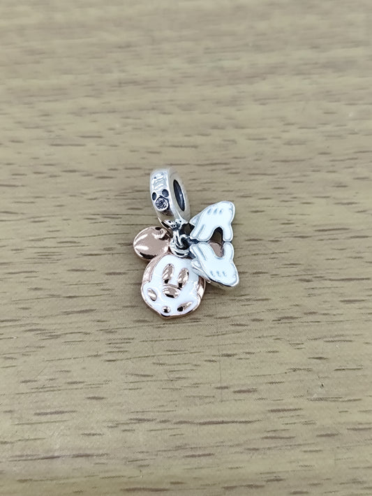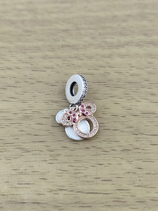 TMPCH030 Dije Charm Pand Silueta Minnie Plata Rosa con Zirconia Fondo Blanco en Plata Fina .925