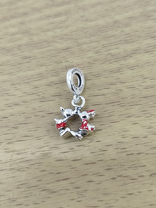 TMPCH042 Dije Charm Pand Circulo Mickey y Minnie Kissing en Plata Fina .925