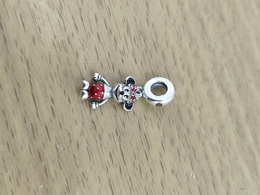 TMPCH037 Dije Charm Pand Minnie Short y Moño Rojo en Plata Fina .925