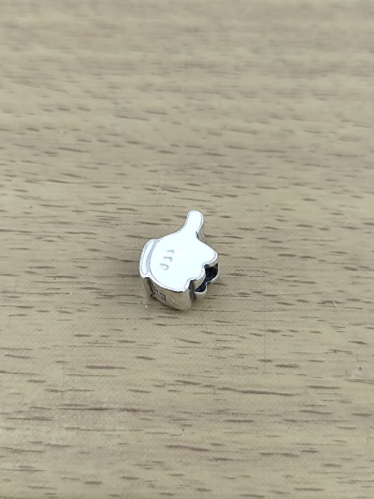 TMPCH039 Dije Charm Pand Guante MIckey Esmalte Blanco en Plata Fina .925