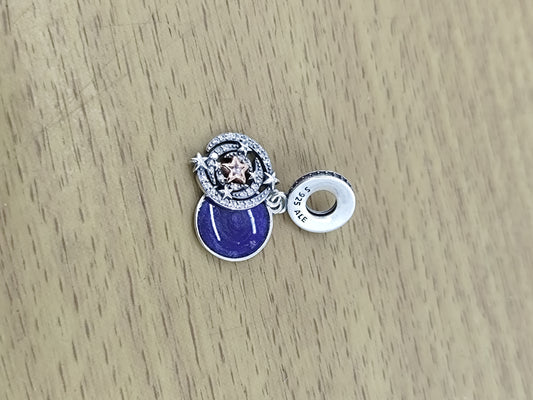 TMPCH040 Dije Charm Pand Galaxia con Zirconias Fondo Azul Marino en Plata Fina .925