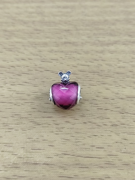 TMPCH044 Dije Charm Pand Mickey Abrazando Corazón Morado en Plata Fina .925