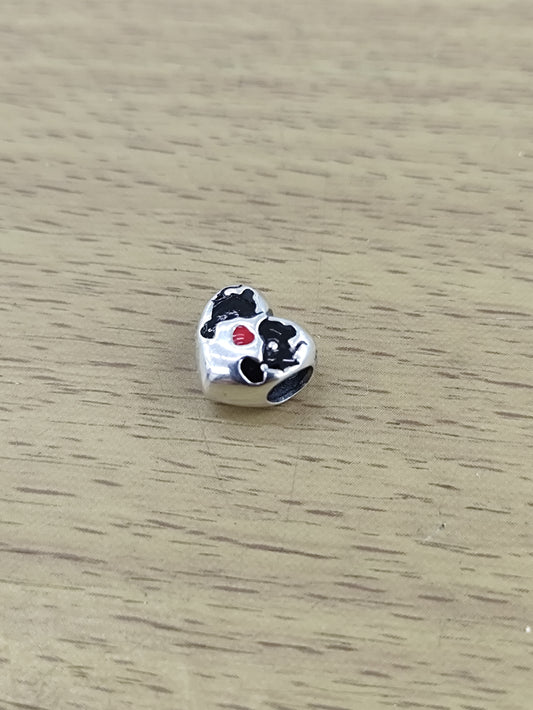 TMPCH046 Dije Charm Pand Corazón Bombeado Siluetas Kissing en Plata Fina .925