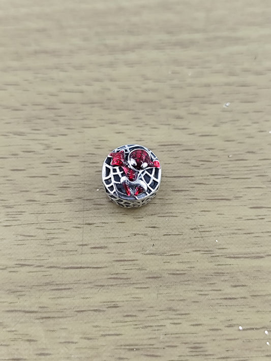 TMPCH053 Dije Charm Pand Círculo Telarañas Spiderman Esmaltado Rojo en Plata Fina .925
