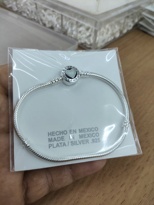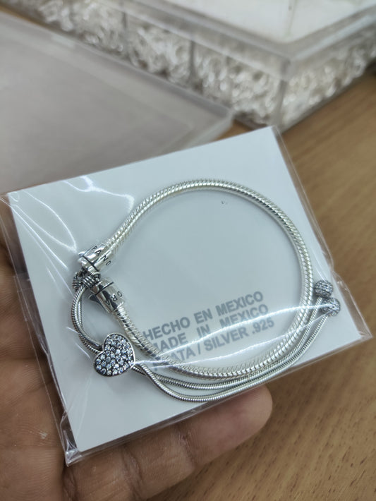 TMPPD011-18 Pulsera Dama Pand Corazón Centro Blanco 18 cm en Plata Fina .925