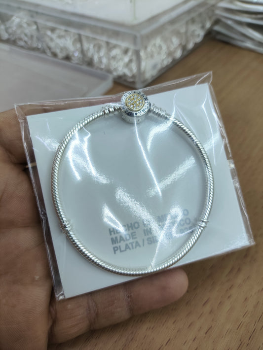 TMPPD013-19 Pulsera Dama Pand Círculo Centro Dorado 19 cm en Plata Fina .925