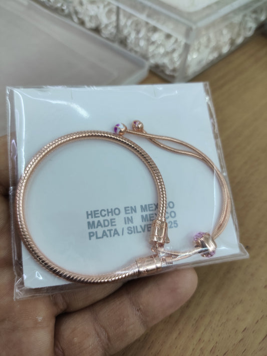 TMPPD015 Pulsera Dama Pand Plata Rosa Broche Zirconia Rosa Ajustable en Plata Fina .925