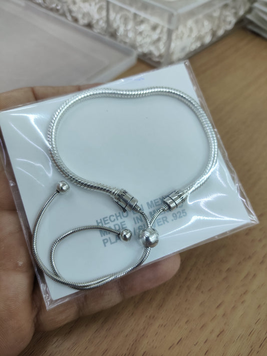 TMPPD016 Pulsera Dama Pand Bolas Lisas Colgantes Ajustable en Plata Fina .925