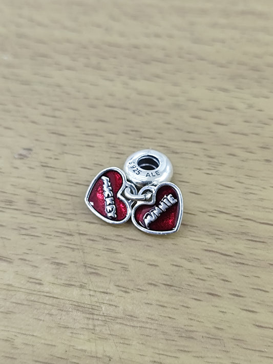 TMPCH029 Dije Charm Pand Corazón Dividido Minnie y Mickey Esmalte Rojo en Plata Fina .925