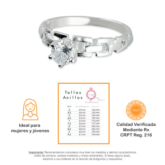 LPAD053 Anillo Modelo Solitario Chain Plata .925 Taxco Gro 2680661248