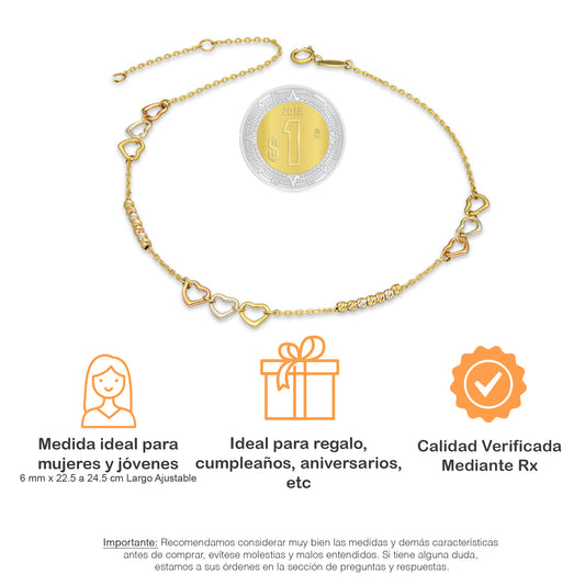 MR10TB011 Pulsera Tobillera Dama Oro Sólido 10K Mod Triada Corazones y Bolitas Diamantadas 6 mm Largo Ajustable 22.5 a 24.5 cmPrecio habitual $ 3,701.65 MXNPrecio habitualPrecio unitario / por