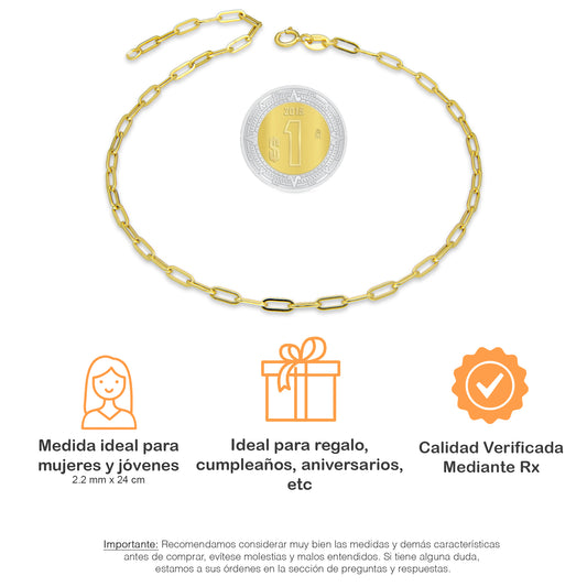 MR10TB012 Pulsera Tobillera Dama Oro Sólido 10K Mod Clip Corto 2.2 mm x 24 cmPrecio habitual $ 2,056.47 MXNPrecio habitualPrecio unitario / por-