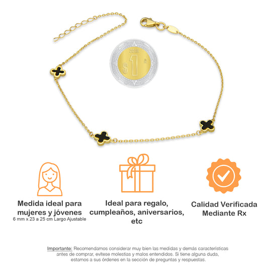 MR10TB013 Pulsera Tobillera Dama Oro Sólido 10K Mod Trébol Esmaltado Negro 6 mm Largo Ajustable 23 a 25 cmPrecio habitual $ 3,701.65 MXNPrecio habitualPrecio unitario / por-