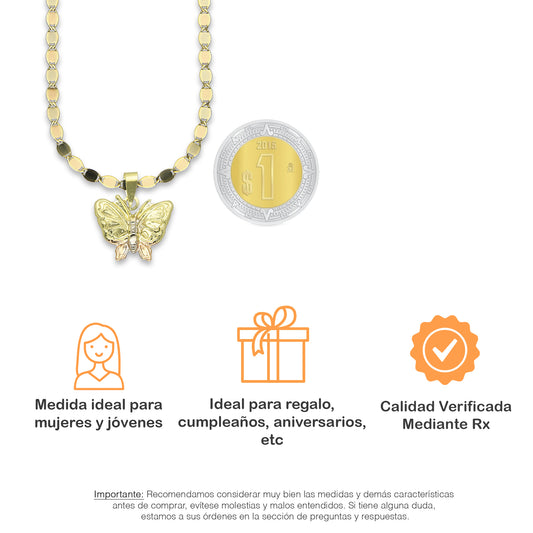 MR14DP020 Cadena Oro Sólido 10K + Dije Oro Sólido 14K Mariposa Troquelada Diamantada Florentino 1.8 cm x 2 cmPrecio habitual $ 3,708.18 MXNPrecio habitualPrecio unitario / por-