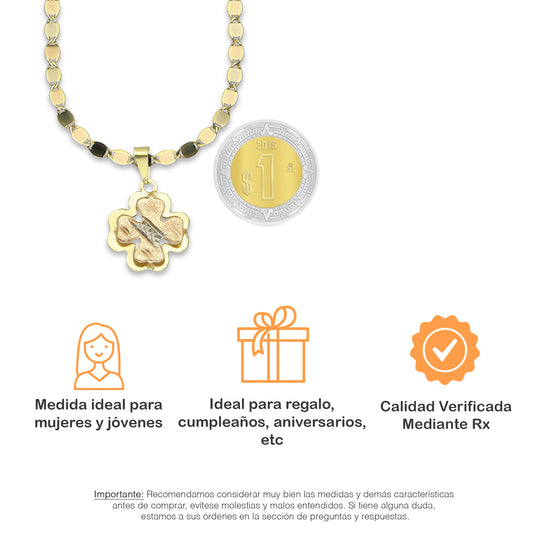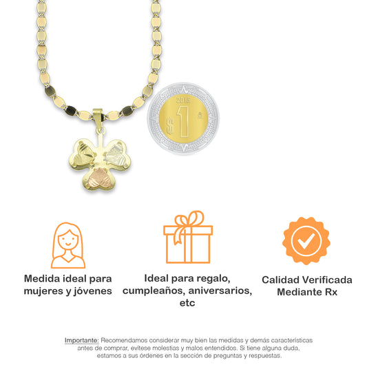 MR14DP022 Cadena Oro Sólido 10K + Dije Oro Sólido 14K Trébol Troquelado Diamantado Florentino 1.7 cm x 2.3 cmPrecio habitual $ 4,361.33 MXNPrecio habitualPrecio unitario / por-