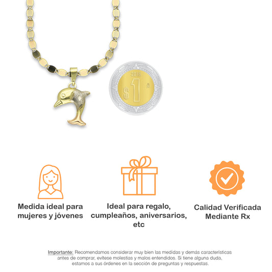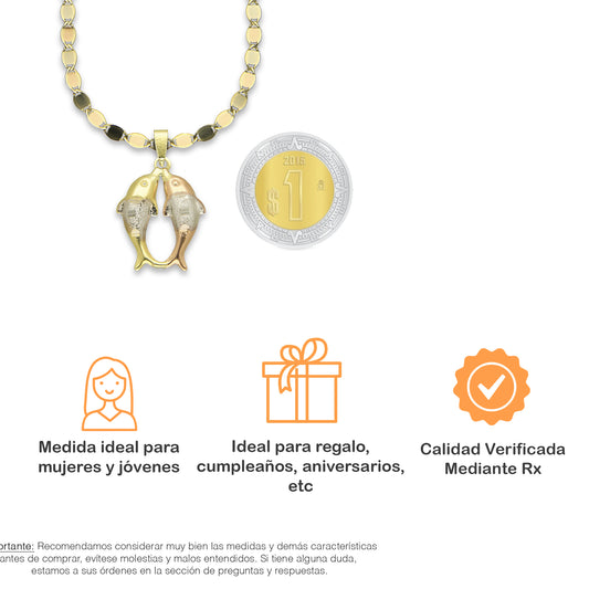 MR14DP024 Cadena Oro Sólido 10K + Dije Oro Sólido 14K Delfin Triada Troquelado Diamantado Florentino 1.3 cm x 2.3 cmPrecio habitual $ 3,918.87 MXNPrecio habitualPrecio unitario / por-