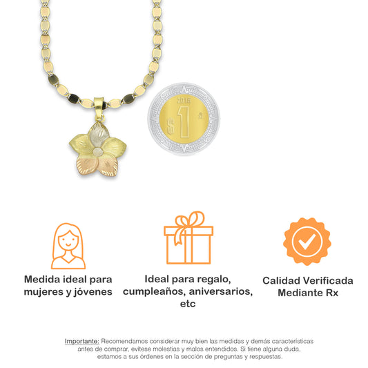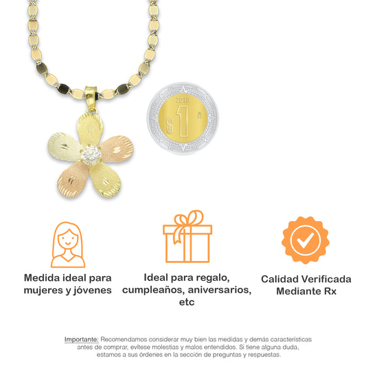 MR14DP030 Cadena Oro Sólido 10K + Dije Oro Sólido 14K Flor 5 Pétalos con Zirconia Diamantada Florentino 2.1 cm x 2.9 cmPrecio habitual $ 5,541.20 MXNPrecio habitualPrecio unitario / por-