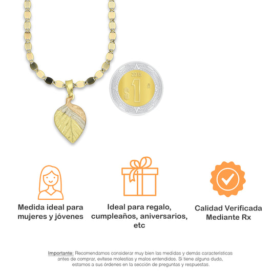 MR14DP028 Cadena Oro Sólido 10K + Dije Oro Sólido 14K Hoja Troquelada Diamantada Florentino 1.2 cm x 2.4 cmPrecio habitual $ 3,623.91 MXNPrecio habitualPrecio unitario / por-
