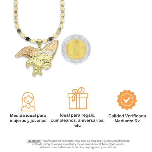 MR14DP029 Cadena Oro Sólido 10K + Dije Oro Sólido 14K Águila Troquelada Diamantada Florentino 2.8 cm x 2.3 cmPrecio habitual $ 4,361.33 MXNPrecio habitualPrecio unitario / por-