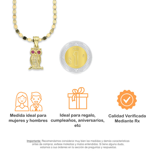 NR14DP035 Cadena Oro Sólido 10K + Dije Oro Sólido 14K Búho Ojos Rojos Semilla 1.7 cm x 3.2 cmPrecio habitual $ 9,062.97 MXNPrecio habitualPrecio unitario / por-