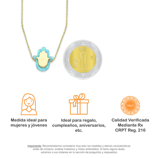 MR10G008 Gargantilla Para Dama Oro Sólido 10K EMF10 Súper Ligera Fantasy Mod Mano de Fátima Ópalo Azul 45 cmPrecio habitual $ 2,874.60 MXNPrecio habitualPrecio unitario / por-