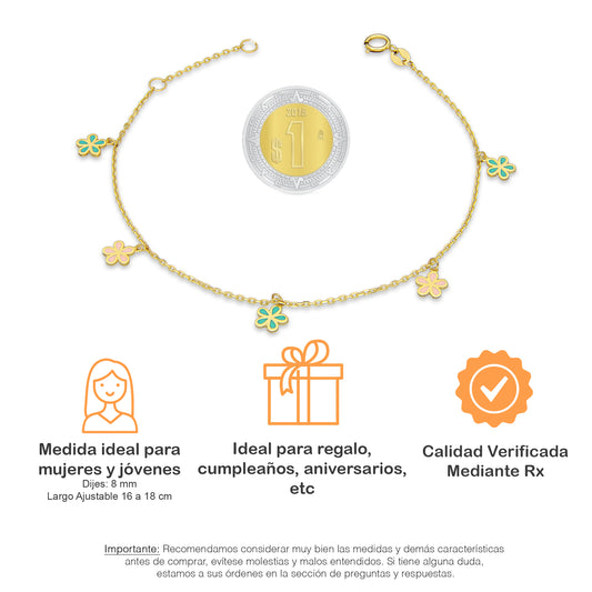 MR10PD071 Pulsera Dama Oro Sólido 10K EM10 Dijes Colgantes Flores Esmaltadas Dijes: 8 mm, Largo Ajustable 16 a 18 cmPrecio habitual $ 2,241.55 MXNPrecio habitualPrecio unitario / por-