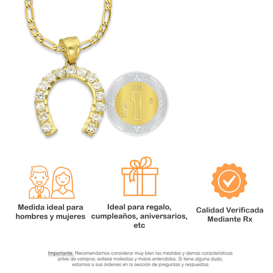 MR14DP007 Cadena Oro Sólido 10K + Dije Oro Sólido 14K Herradura Destello Male 2.4 cm x 3.7 cmPrecio habitual $ 14,250.20 MXNPrecio habitualPrecio unitario / por-