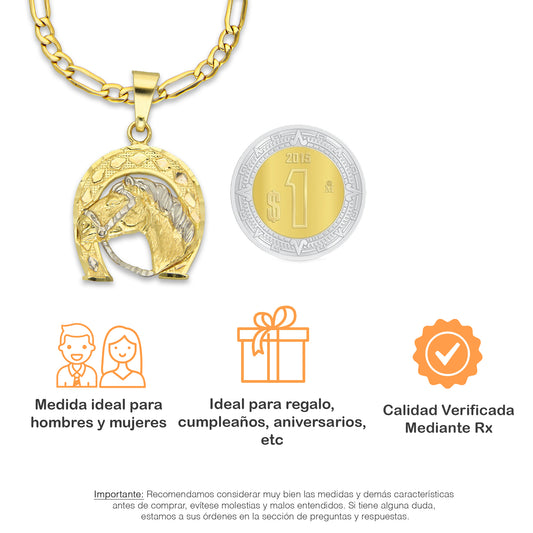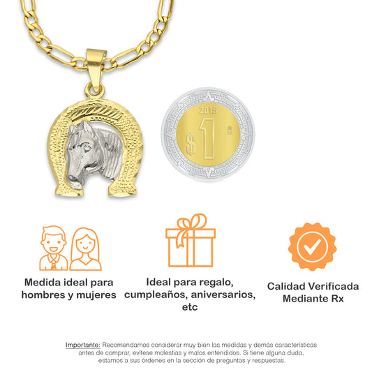 MR14DP008 Cadena Oro Sólido 10K + Dije Oro Sólido 14K Herradura Cabeza de Caballo Textura 2 cm x 3.3 cmPrecio habitual $ 12,561.79 MXNPrecio habitualPrecio unitario / por-