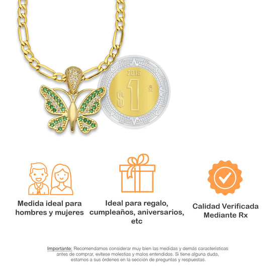MR14DP010 Cadena Oro Sólido 10K + Dije Oro Sólido 14K Mariposa Zirconias Verde y Blanco 1.8 cm x 1.8 cmPrecio habitual $ 9,979.43 MXNPrecio habitualPrecio unitario / por-
