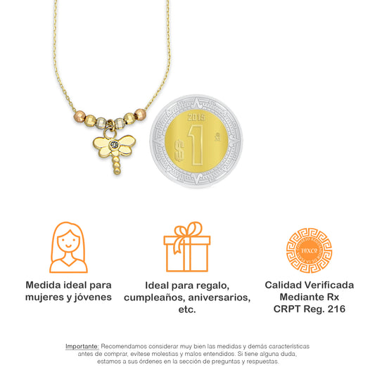 MR10G002 Gargantilla Para Dama Oro Sólido 10K EMF10 Súper Ligera Fantasy Mod Bolitas Facetadas Libélula 40 cmPrecio habitual $ 2,530.46 MXNPrecio habitualPrecio unitario / por-