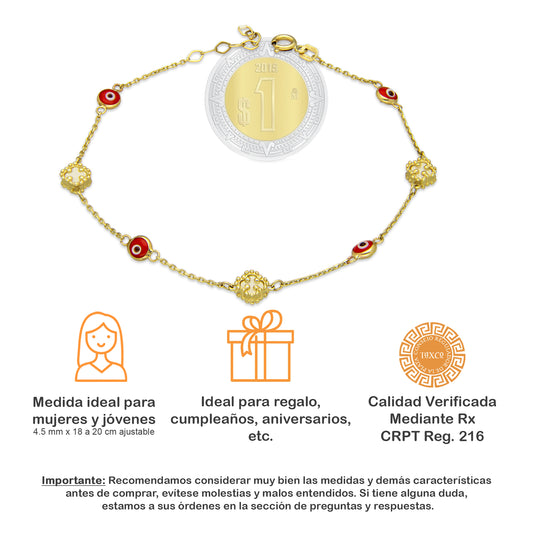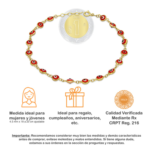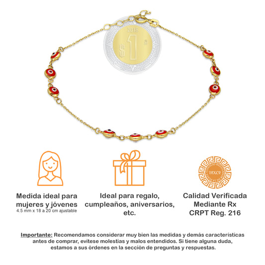 MR10PD031 Pulsera Dama Oro Sólido 10K EMF10 Modelo Ojitos Turcos Rojo Triada 4.5 mm Ajustable 18 a 20 cmPrecio habitual $ 3,067.38 MXNPrecio habitualPrecio unitario / por-