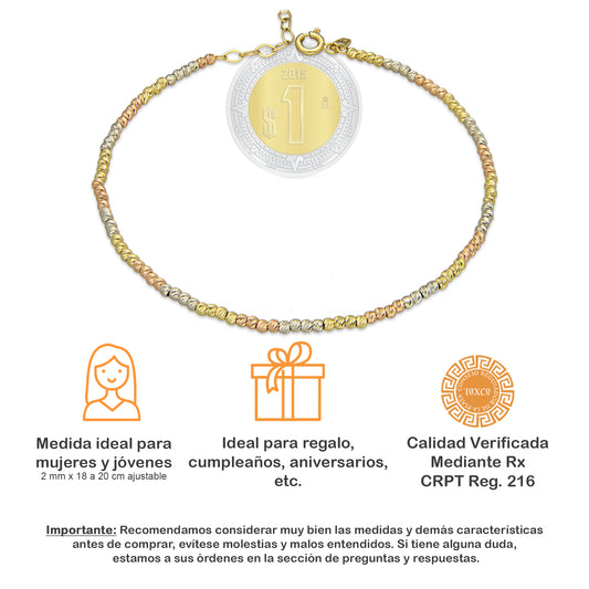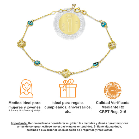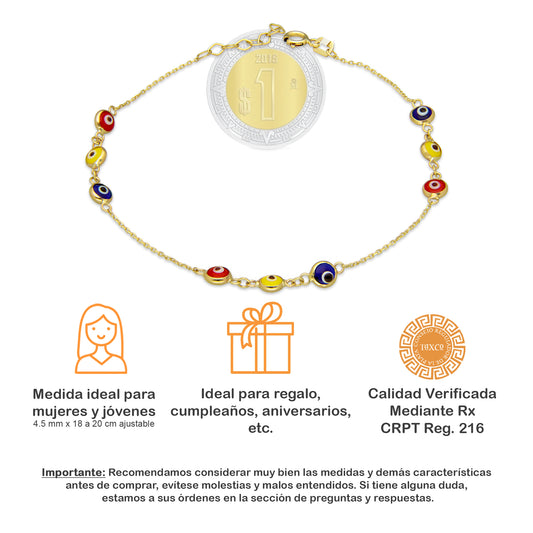 MR10PD032 Pulsera Dama Oro Sólido 10K EMF10 Modelo Ojitos Turcos Multicolor Triada 4.5 mm Ajustable 18 a 20 cmPrecio habitual $ 3,067.38 MXNPrecio habitualPrecio unitario / por-