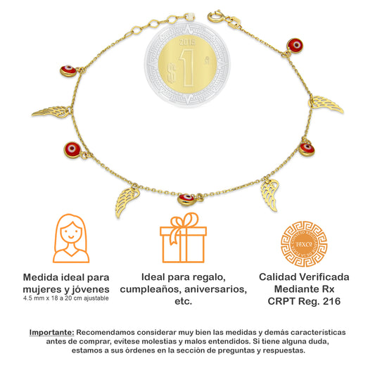 MR10PD034 Pulsera Dama Oro Sólido 10K EMF10 Modelo Ojitos Turcos Rojo y Alas Colgantes 4.5 mm Ajustable 18 a 20 cmPrecio habitual $ 2,825.22 MXNPrecio habitualPrecio unitario / por-